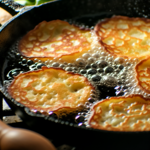 Правильний вибір картоплі. Для хрустких дерунів найкраще підходить картопля з високим вмістом крохмалю (борошнисті сорти). Саме вона дає природну «склеюючу» текстуру без зайвого борошна. Як отримати максимальну хрусткість. Після натирання картоплі обов’язково зцідіть зайвий сік, але не виливайте його — дайте крохмалю осісти, а потім поверніть його до маси. Це традиційний український секрет, який суттєво покращує текстуру дерунів. Ідеальна консистенція тіста. Картопляна маса має бути густою, не рідкою і не водянистою. Якщо тісто надто текуче, додайте ще трішки борошна або одну натерту сиру картоплину. Сковорода та жир. Для золотистої скоринки використовуйте добре розігріту сковороду з достатньою кількістю олії. Найкраще – рафінована соняшникова або суміш вершкового масла з олією (для смаку). Не поспішайте перевертати. Деруни потрібно перевертати лише тоді, коли нижній бік уже добре підрум’янився і відійшов від поверхні. Часте перевертання робить їх ламкими.Варіації рецепту