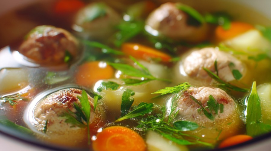 Такий суп зазвичай запам’ятовується не рецептом, а смаком: прозорий бульйон, м’які фрикадельки, проста нарізка овочів. Саме так готували вдома на звичайний будній обід, без складних технік і без зайвих інгредієнтів.